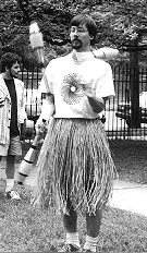 T (not his real name) is a purist. He plays no other instruments but the uke. With well separated gills and a hairy cap, he holds the rhythm section of Humu together. Don't confuse him with a Jack O Lantern. T was awarded the Gold Medal at the Panama Pacific International Exposition in 1915 for Juggling ukes. In 1932, T took top honors in the Arkansas Uke Rustlers Rodeo for rustling a Martin Ditson Style 3 Dreadnought from the trash heap. He is also co-inventor/architect of the Rasta-doubleneck-Dread-NOT(!) Gretsch Rambler uke.